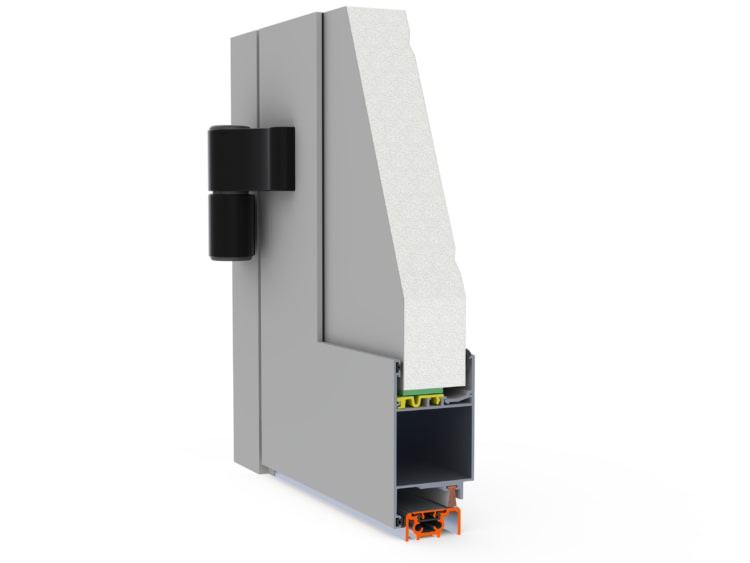 Sistem DB75 obsega panelna vrata, katerih debelina je bila povečana na 60 mm. Zahvaljujoč fuziji toplih panelov s 75 mm globokimi profili se vrata odlično prilegajo energijsko varčnemu in pasivnemu ohišju. Plošče so dobavljive tako brez reliefa kot tudi z ozkim reliefom z notranje strani, barvane ali furnirane.