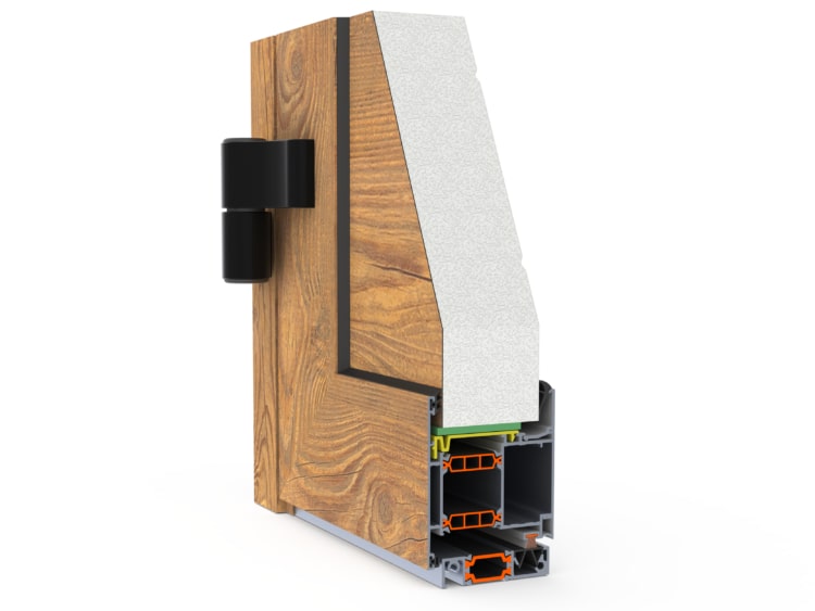 Stransko vratno krilo je zapolnjeno s garažnimi paneli izoliranimi s PU peno. Te plošče so lahko debele do 60 mm. To je rešitev, ki jo poznamo pri najtoplejših vratih, edinih garažnih vratih na trgu, ki so po vsej višini izdelana iz plošč debeline 60 mm. Vrata in garažna vrata, ki so tako topla, se dobro obnesejo tudi v pasivnem stanovanju.