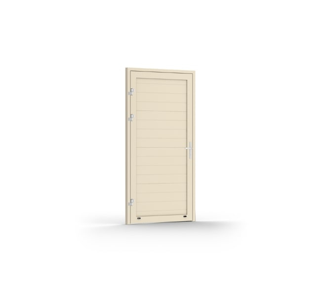 Sistem stranskih vrat temelji na profilih širine 51 mm. Krilo je zapolnjeno z aluminijastimi profili rolo vrat ali segmenti debeline 40 mm. Da bi dosegli enoten videz podboja in krila ter popolno prileganje k oblogi garažnih vrat, je profil dvostransko pobarvan v eno od 200 barv RAL.